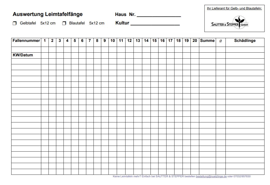 | Erhebungsbogen für Monitoring von Schädlingen | |