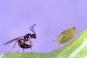Die adulte Aphidius colemani ist mit 2-3 mm etwa halb so groß wie A. ervi. Kopf und Thorax sind schwarz und der Hinterleib braun gefärbt. In ihrem einwöchigen Leben kann ein Weibchen mehr als 200 Blattläuse parasitieren, die mit je einem Ei belegt werden. Nach 1-2 Tagen schlüpft die Larve, ernährt sich vom Innern der Blattlaus und durchläuft mehrere Larvenstadien, bevor sie sich nach etwa 10 Tagen in der ausgefressenen Blattlaushülle verpuppt. Diese mumifizierten Blattläuse sind leicht an ihrer aufgeblasenen, kugeligen Gestalt und ihrer gold-bronzefarbenen Färbung zu erkennen. Nach weiteren 5 Tagen schlüpft die adulte Schlupfwespe durch ein kreisrundes Loch und beginnt sofort wieder mit der Parasitierung neuer Blattläuse.