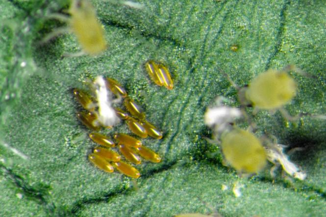 Bitte beachten Sie: A. aphidimyza benötigt Langtag, d.h. über 14 Stunden Licht pro Tag. Im Kurztag (März bis September) verbleiben die Nützlinge in Puppenruhe im Boden, deshalb ist ein Einsatz während dieser Zeit nur mit einer Zusatzbelichtung (5 Watt/m²) möglich. Außerdem haben sie hohe Ansprüche an die Luftfeuchte (70-90%), jedoch geringe an die Temperatur (>14 Grad, optimal 20-24°C). Die Vermehrung der Gallmücken ist in Gewächshäusern mit Tropfbewässerung oder Grodankultur schwierig, da sich die Larven nur in feuchtem Substrat vermehren können. Gallmücken werden im Puppenstadium in einem Substrat versendet, aus dem schon nach wenigen Tagen die Imago schlüpfen.