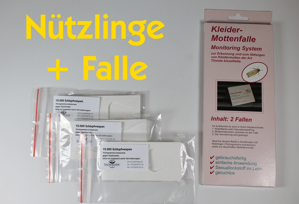 Für alle Mottengeplagten gibt es nun DIE Lösung: Trichogramma-Schlupfwespen! Diese winzigen Schlupfwespen machen der Plage ein Ende, da sie gezielt nach den Eiern der Lebensmittel- und Kleidermotten suchen und diese parasitieren. Aus den parasitierten Eiern schlüpfen so neue Schlupfwespen anstatt der Mottenlarven; so wird die Entwicklung einer neuen Generation von Motten verhindert. Aber nicht nur das: die Bekämpfung ist völlig ungefährlich sowohl für Mensch als auch für das Haustier! Keine Chemie in der Küche oder im Kinderzimmer! Falls Sie Angst haben, von den kleinen Helfern gestochen zu werden, oder befürchten, überall im Haus tausende von Wespen vorzufinden, ist dies völlig unbegründet! Denn zum einen können die Trichogramma-Nützlinge Menschen und Tiere gar nicht stechen und zum anderen sind diese so klein (etwa 0,3 bis 0,4 mm), dass Sie aussehen wie ein dunkles Sandkorn und dadurch gar nicht auffallen. Wenn die Motten bekämpft sind, verschwinden auch die Schlupfwespen von ganz allein.